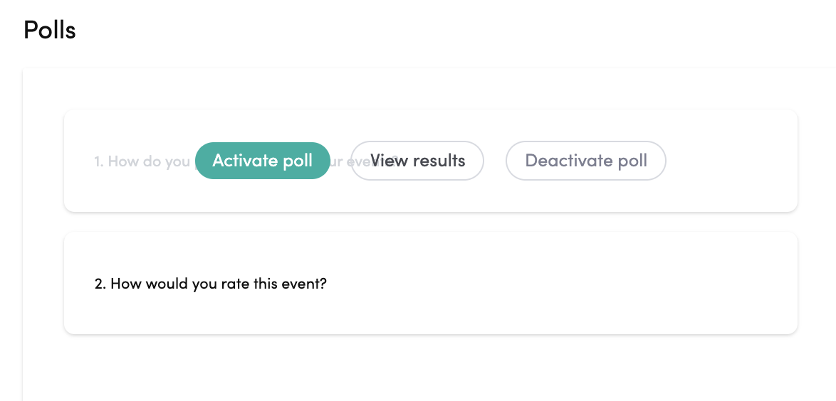 • Activate poll: Start showing the poll question to the audience and allow voting